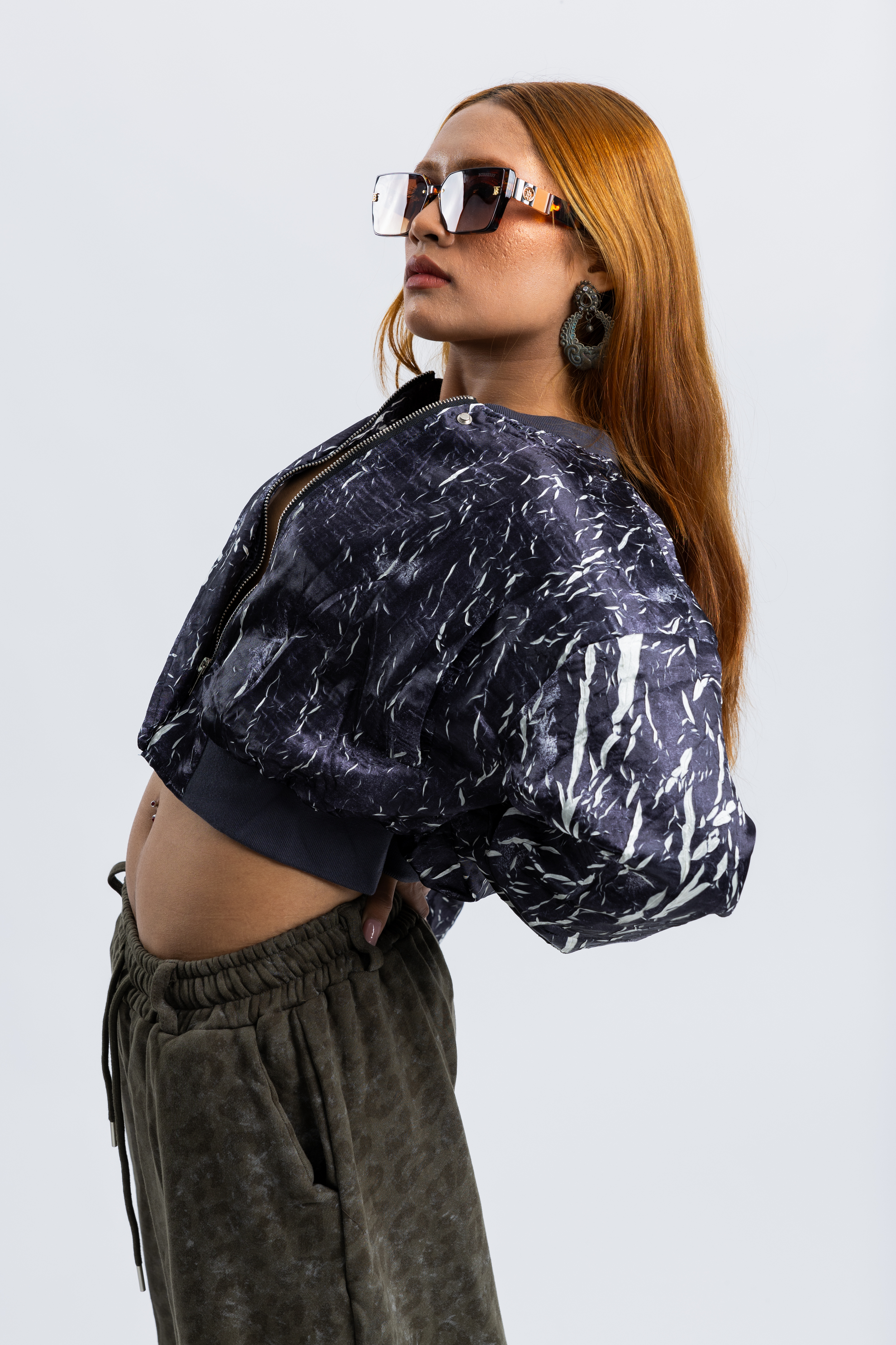 • Marble Patterned Zip Up Top